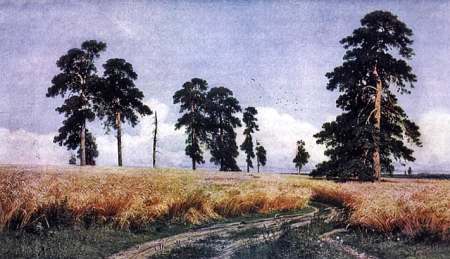 Такой же эпической силой веет от всем известной картины «Рожь». Все просто, ясно и убедительно в ней, как в самой жизни. Главное тут — хлебное поле, дорога во ржи с низко летящими ласточками, цветочками на обочине и сама рожь, желтым морем уходящая к горизонту.