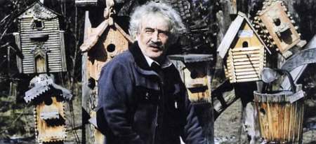 Ростислав Александрович Шило у выставки скворечен, сделанных школьниками.