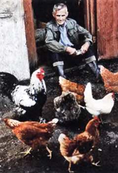 Старина Яков Иванович Митронькин нас встретил в аккуратно прибранной, просторной избе. Не спал, дожидаясь нашего позднего появленья. А утром, когда мы с сыном его еще продирали глаза, уже сидел на пороге на солнышке — кормил кур. Занятие это ему явно нравилось. «Я деревенский. С детства всякую живность люблю. И в земле тоже люблю копаться. Излишки всего везу на рынок. Велосипед для меня лучше всякой машины». — «А не пихнули кого-нибудь нечаянно колесом?» — «Что вы! Рука у меня твердая, и здоровье в порядке».