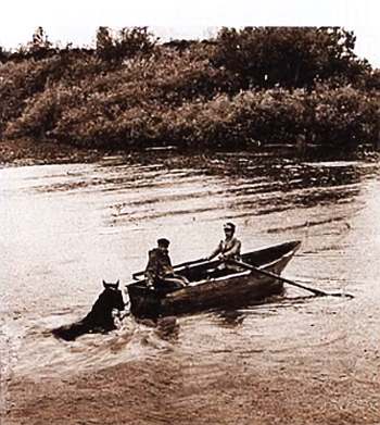 Из Москвы в пензенские Тарханы везли мы молодую кобылу по кличке Осинка. Лошадей на большие расстояния возят обычно в прицепных двухколесных кибитках. На дорогах в Америке довольно часто я видел таких пассажиров. На быстром ходу лошади высовывали из обитого по краям войлоком окошка головы и спокойно наблюдали за бегущим по сторонам пейзажем. Одна, помню, заржала, увидев на лугу косячок лошадей.