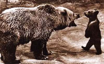 Обратите внимание на необычный снимок медведей. Без пояснений видно — выговор. И серьезный. Но только за шалость. За провинность мать должна бы беззаботному сорванцу дать затрещину — у медведей это в порядке вещей, воспитание этого требует.