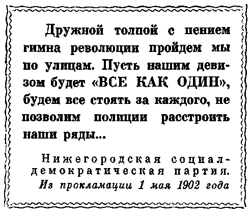 Выкрики из зала, смех, и Владимир Михайлович напоминает о каких-то стычках с городовыми, которые были обращены в бегство дружинниками, о «розыгрыше» местного пристава, подписавшего подсунутую ему бумагу об отмене его собственного распоряжения…