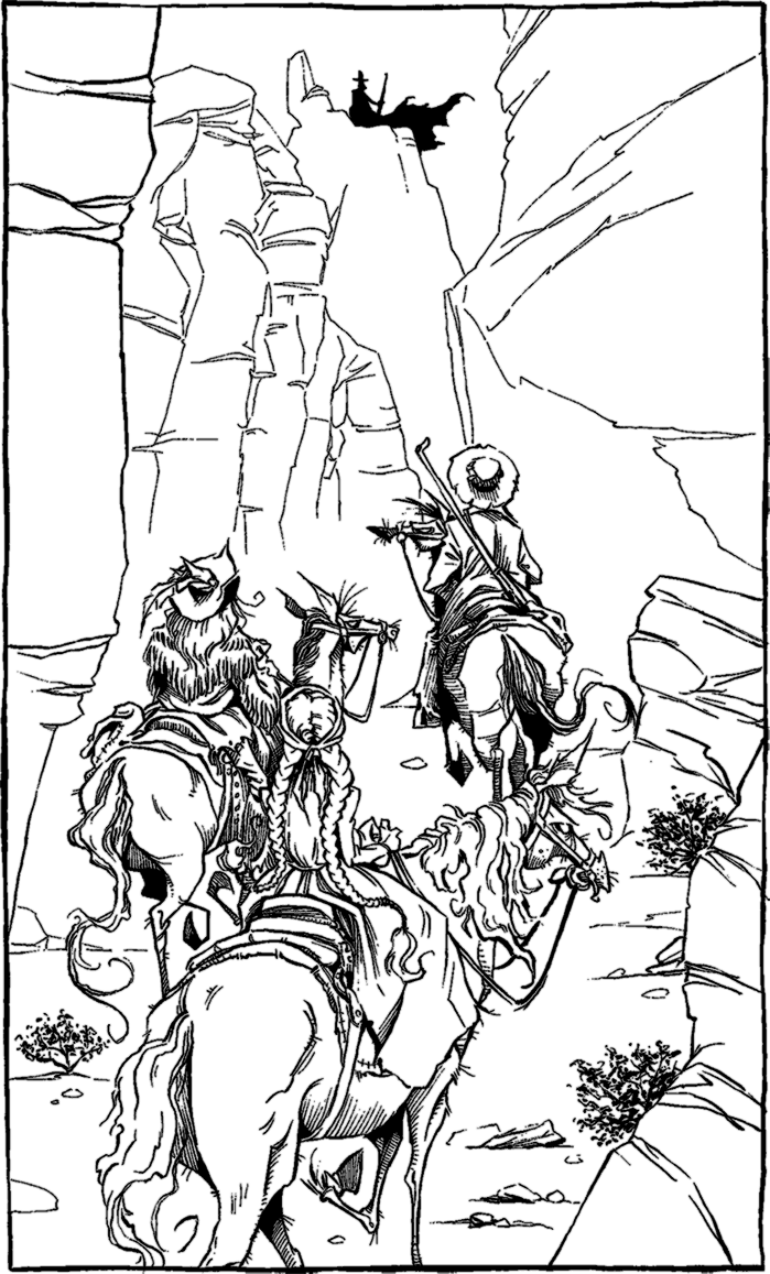 За этим сторожевым постом тропа стала заметно шире, и лошади перешли на рысь. Обернувшись, беглецы могли видеть фигуру одинокого часового, который стоял, опершись на ружье. Они поняли, что это последний пограничный пост мормонов и что впереди — свобода!