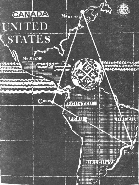 Возьмите карту западного полушария. От Монреаля на юго-восток проведите прямую линию до мыса Кабо-Фрио, расположенного у восточной оконечности Южной Америки. Затем соедините Кабо-Фрио с островом Кокос в Тихом океане, близ Панамы, и проведите еще одну линию — от Кокоса до Монреаля. На карте появится треугольник.
