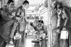 блюдают, как с буксира в воду прыгают зеваки, экипаж и просто
