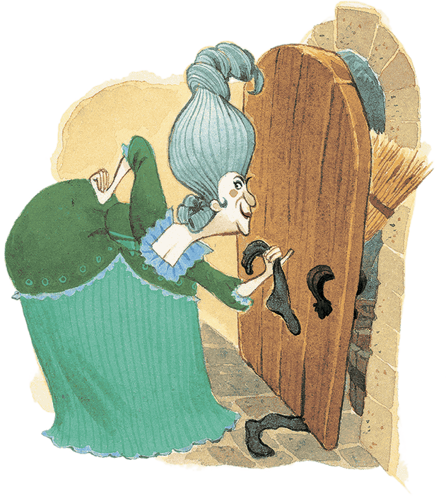 Тут на глаза герцогине попался чулан. Что-то торчало из-под двери. Потянув за это что-то, герцогиня уставилась на пару чёрных, как уголь, чулок.