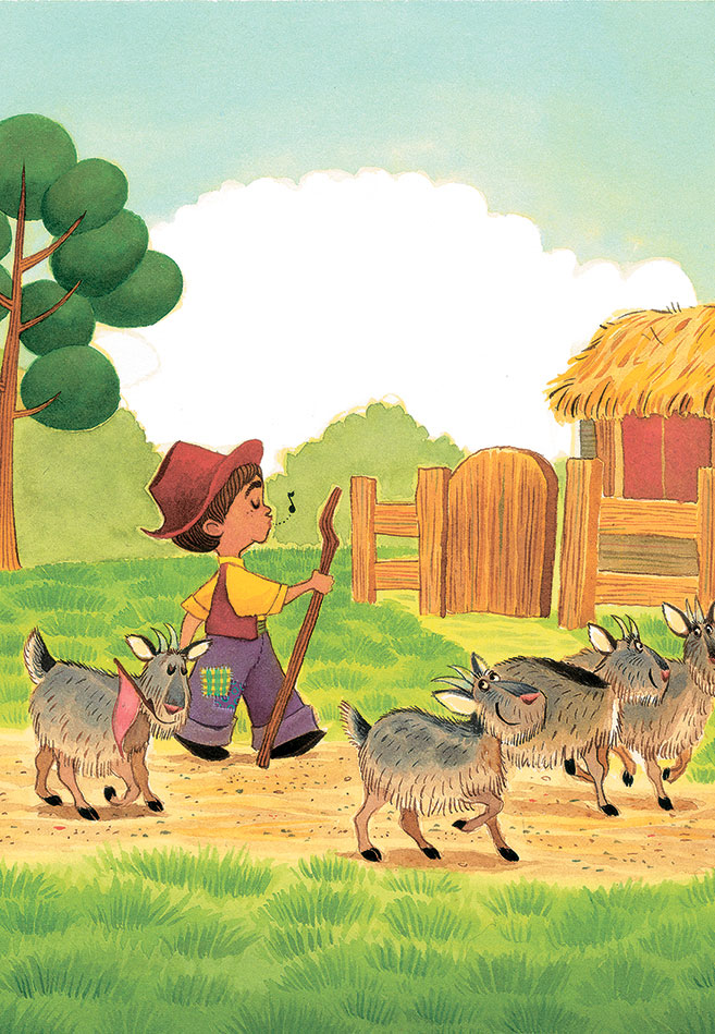 По пути домой Даф насвистывал козам песню. Козы целы, а значит, день удался!