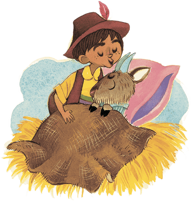 Даф кормил коз и улыбался, обдумывая свою идею. Улыбался он и когда надевал на коз пижамки. Улыбался, когда желал им спокойной ночи.