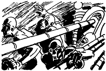 И я узнал, что в подземных толщах Птуин, на глубинах от трехсот до восьмисот километров, раскинулись целые города, где жили труженики Космоса эробсы. Откуда они появились на планете? Из числа тех же островитян, потомки которых возделывают Сумеречные Равнины? Преодолевая душивший меня гнев, я смотрел на космических братьев грианоидов, работавших около чудовищных механизмов. Окутанные багровыми пыльными облаками, эробсы шаг за шагом вгрызались в горные породы, расположенные в непосредственной близости от тяжелого ядра планеты. Они добывали сырье для производства мезовещества.
