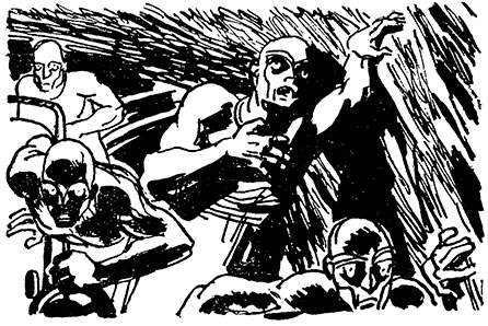 Их глаза сверкали, как факелы, в призрачной багровой мгле. Вероятно, мгла представляла собой вредные испарения окружающих горных пород.