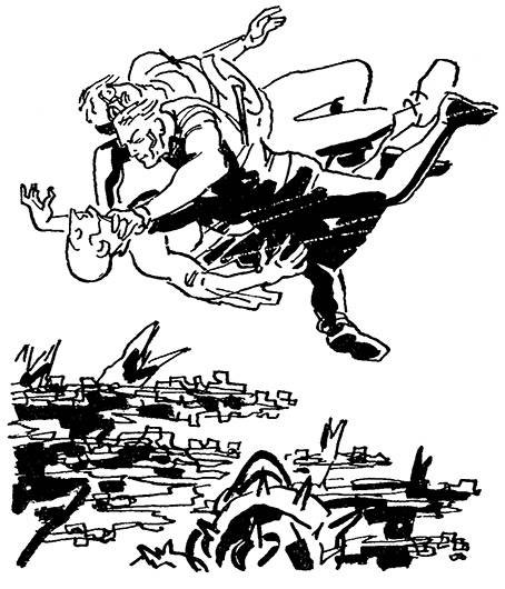 Через минуту все было кончено. Тогда я отцепил с груди мертвого Люга антигравитационный диск, едва не вырвавшийся из рук, и тело грианина камнем полетело вниз.