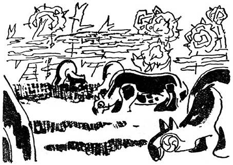 На обширных пространствах красновато-зеленых лугов паслись стада весьма диковинных животных, отдаленно напоминавших наших овец или коз. Их заметно удлиненные туловища, без шерсти, на очень коротеньких толстых ножках, перемещались в высокой густой траве. На сравнительно маленькой голове сидели два огромных глаза и пара невысоких тупых шишек вместо рогов.