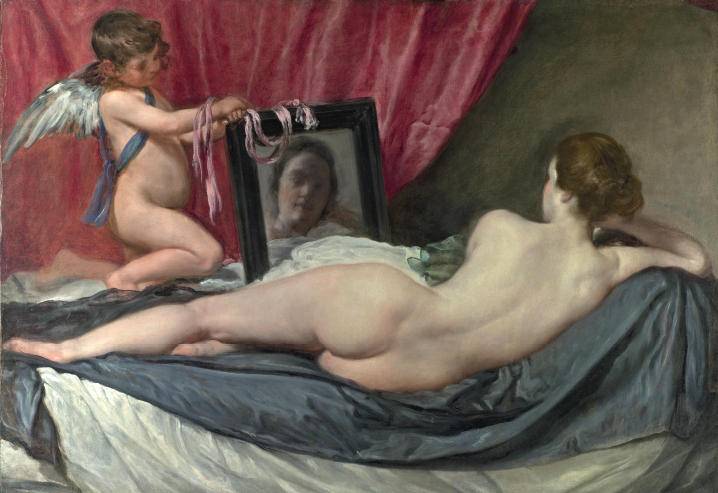 После возвращения в Испанию Веласкесу очень не хватало этой свободы. Ни одному художнику Испании XVI–XVII веков не было позволено писать обнаженное женское тело. Для многих художников это было настоящей трагедией, так как именно изображение обнаженной плоти позволяло раскрыть истинное мастерство и мощь живописца. Для Веласкеса ни желание высоких должностей, ни стремление к материальной независимости не могли сравниться с жаждой творческой свободы, с возможностью писать то, что требовала от него муза. Благодаря доверию и покровительству Филиппа IV Веласкес стал тем единственным художником, которому было позволено написать обнаженную женщину. Эта прекрасная картина называется «Венера с зеркалом»: на ней изображена обнаженная девушка с тонкой талией и изумительным по красоте телом. Она смотрит в зеркало, в котором мы видим не лицо греческой богини, а лицо очаровательной юной испанки в обрамлении воздушных серо-жемчужных бликов.