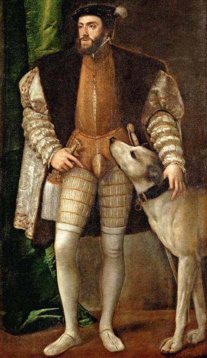 Тициан работал в очень многих жанрах, но особое место в его творчестве занимал портрет. За свою жизнь Тициан написал более 100 портретов, полных глубокого психологизма. Он писал портреты венецианских вельмож, духовных лиц и даже королей. В ноябре 1532 года император Карл V, покровительствовавший художнику, вызвал его в Болонью, где в то время находился императорский двор. Художник пробыл в Болонье с императором до марта 1533 года. В Болонье Карл V оказывал Тициану особые знаки внимания (например, совершал вместе с ним прогулки верхом), что вызывало зависть придворных. Сам Карл V неплохо рисовал и любил наблюдать за тем, как работает Тициан. Именно в Болонье Тициан нарисовал портрет Карла V с собакой, который ныне находится в музее Прадо в Мадриде. 10 мая 1533 года Карл V возвел Тициана в дворянское достоинство.