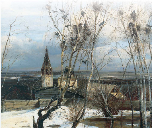 Прилётная птица начинает понемногу показываться. Грачи, губители высоких старых дерев, красоты садов и парков, прилетели первые и заняли свои обыкновенные летние квартиры, самые лучшие берёзовые и осиновые рощи. Уже начали заботливые хозяева оправлять свои старые гнёзда новыми материалами, ломая для того крепкими беловатыми носами верхние побеги древесных ветвей. Далеко слышен их громкий, докучный крик, когда ввечеру, после дневных трудов, рассядутся они всем собором, всегда попарно, и как будто начнут совещаться о будущем житье-бытье.