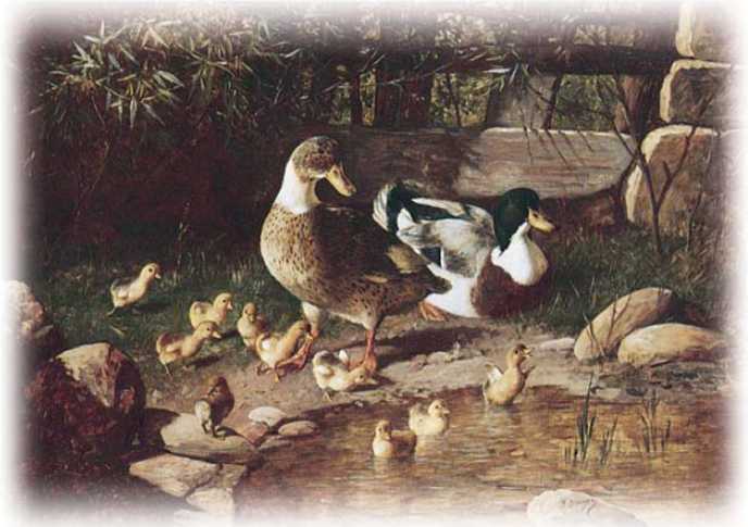 Осенью корму понадобилось больше, и, чтоб не тратиться даром, крестьянка продала восемь утят, а двух молодых селезней и двух уток оставила на племя; но через несколько недель они улетели и пропали.