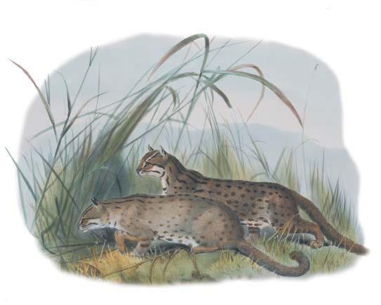 Вдруг я вижу, что большая пёстрая кошка осторожно подкрадывается, ползёт и прячется, растянувшись в самой береговой траве: так всегда поступают кошки, выжидая своей добычи.