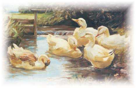 С тех пор она никогда не прилетала в сад, и утята каждый день наедались досыта. Они не только ели сами, но и угощали храброго Алёшу за то, что он спас их от стрекозы.