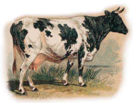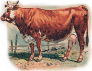 Некрасива корова, да молочко даёт. Лоб у неё широк, уши в сторону; во рту зубов недочёт, зато рожища большие; хребет – остриём, хвост – помелом, бока оттопырились, копыта двойные.