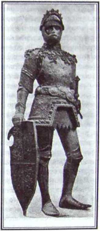 Бронзовая фигура короля Артура в латах, начало XVI в. Из «Книги знаний» общества Гролье (1911)