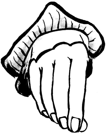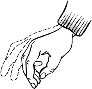 Манипуляция выполняется следующим образом. Рука располагается над избранной зоной. Затем слегка отводят кисть вверх, четыре пальца сводят вместе, не сгибая их, и большим пальцем несколько раз быстро проводят по кончикам остальных (рис. 12). Это движение напоминает счет монет или посыпание солью (отсюда и название приема).