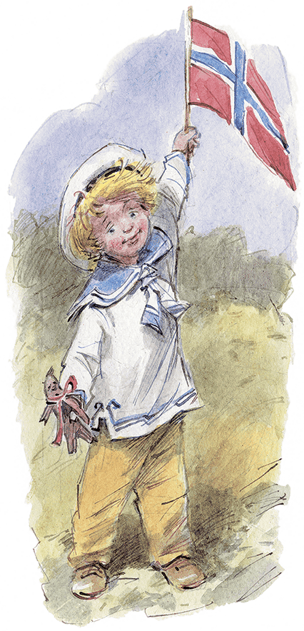 Подходя к его дому, они ещё издали увидели, что над ним развевается огромный норвежский флаг. Он был поднят на флагштоке, прикреплённом прямо на крыше, а сам столяр стоял на крыльце в белой рубашке и тёмно-синих брюках и начищал ботинки. Доведя их до блеска, он обулся и надел синий пиджак с огромным трёхцветным бантом на лацкане.