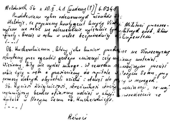 «Я произвожу в кавалеры ордена Virtuti Militari гражданина Кухарского, который, выполняя миссию курьера, проник в Словакию, был там схвачен агентами гестапо и успел уничтожить все документы, которые нес с собой. Его бросили в тюрьму, пытали, но он никого не выдал. Пытаясь покончить с собой, перерезал себе вены на руках. Был помещен в больницу в Новы-Сонче, совершил побег с помощью доблестных сограждан и вернулся в наши ряды».