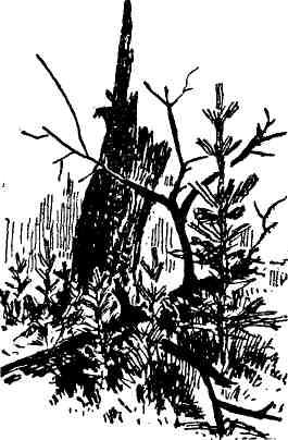 На этот раз он снова заглянул в облюбованный уголок Хотелось по привычке покурить, помечтать, полюбоваться горными далями. Но он не узнал знакомого места. Поляна была та же, все так же глухо обступал ее сосновый лес, все так же буйно росла трава, но не было главного — гордой лиственницы. Над землей возвышался остаток ствола, черным острым изломом целясь в небо. Владимир подошел ближе и понял, что произошло. Лиственницу свалило молнией. Вершина валялась тут же, из травы торчали голые сучки, а над ними кружились стрекозы. Дикий татарник разросся мощно, привлекая синими и малиновыми махровыми цветами.