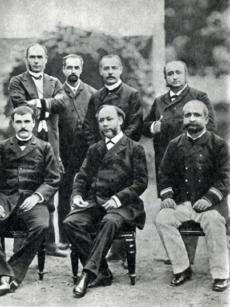 (средний в первом ряду), которого Гоген обзывал «негром», в окружении своих подчиненных.