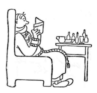 Взгляните-ка на него: не правда ли, свой недуг он несет с достоинством, усевшись в кресло в жарко натопленной комнате, окруженный чашками чая, отваром проскурника и ромашки, весь в компрессах, с градусником, носовым платком и легким чтеньем под рукой.