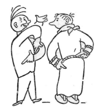 Но вот является второй ближний и находит страдальца в кресле, в руках у того блюдце с кашей, кружечка молока, легкое чтение и носовой платок.