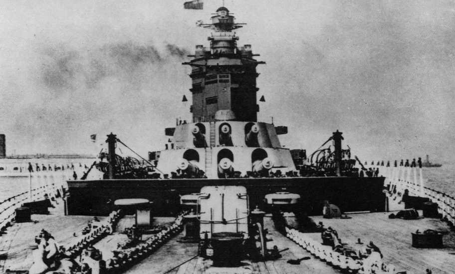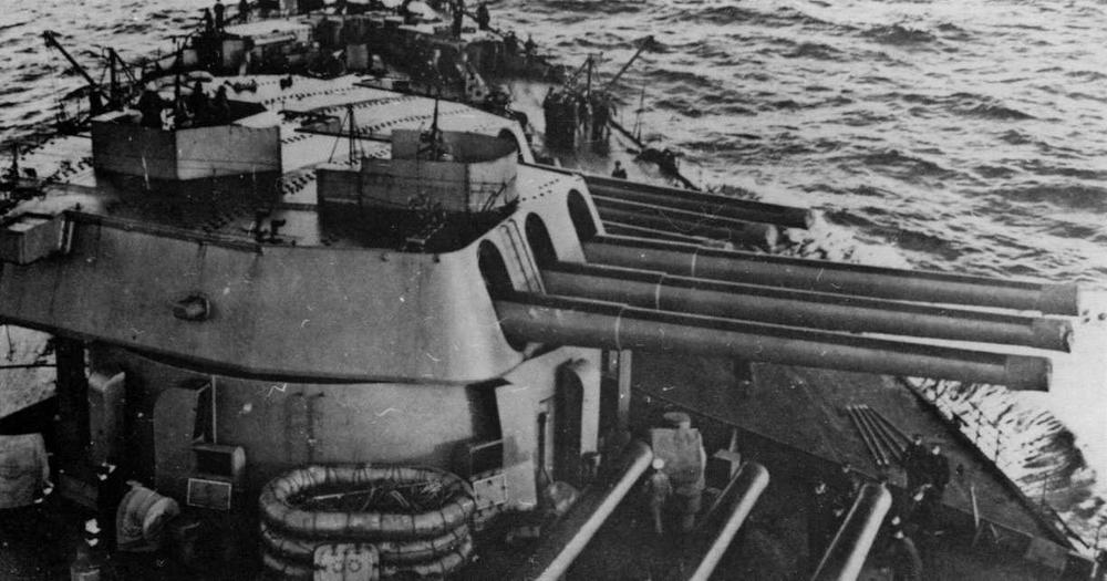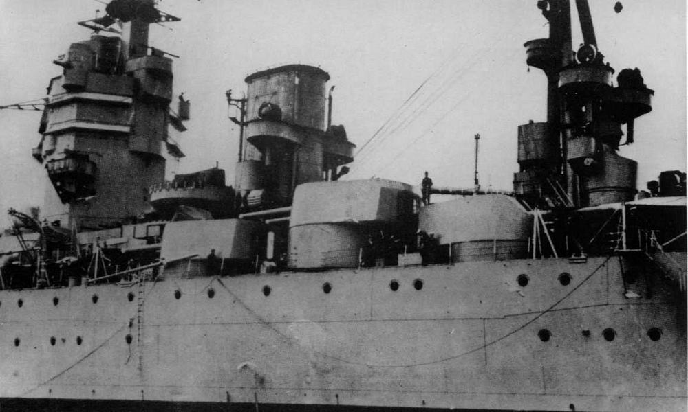 "Родней на разборке. С корабля снимают 406-мм орудия.