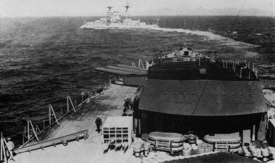 Орудия и башни главного калибра линейного корабля "Родней”.