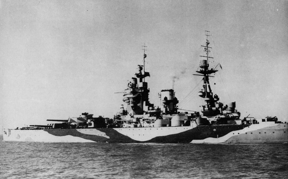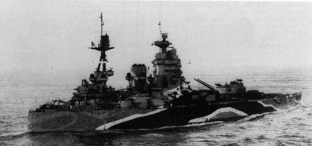 Линейный корабль "Нельсон” в 1939 (вверху) и в 1941 г.
