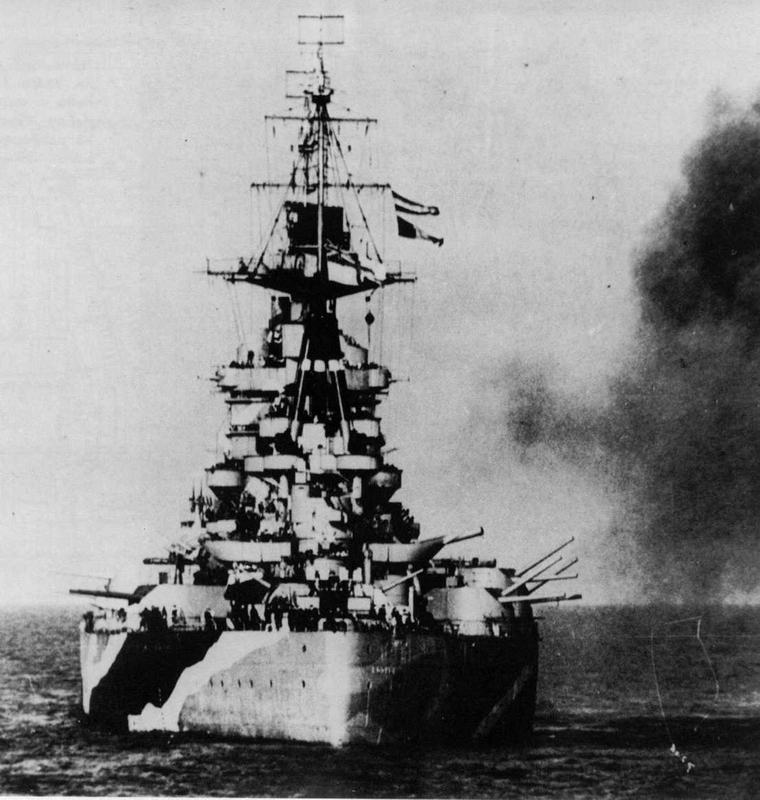 Линейный корабль “Родней” в 1937 (вверху) и в 1940 г.
