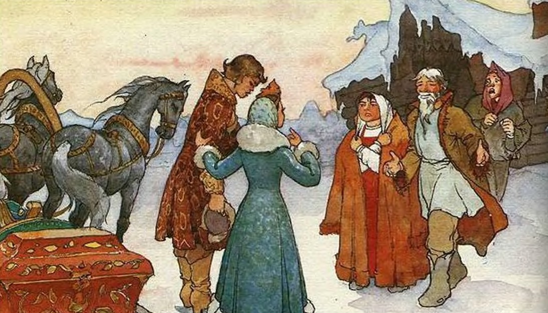 – Здравствуй, батюшка! Меня Морозко спас да ещё приданым