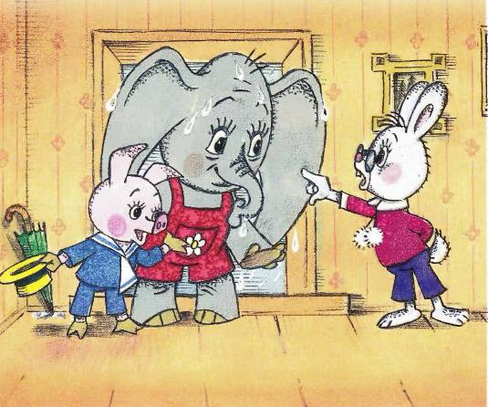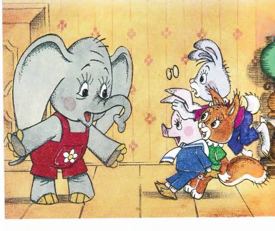 – Постой, пожалуйста, немножко в углу, ради меня, -попросил Поросёнок Слонёнка.