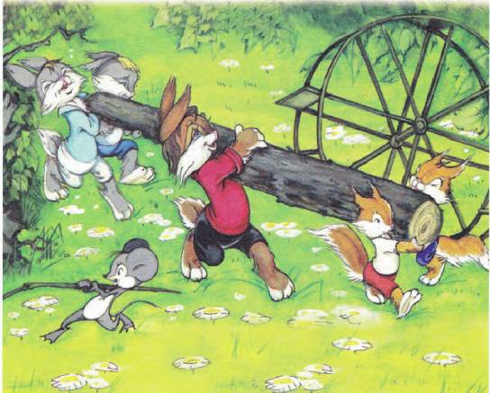 Ухватились зайцы с белками за канат, навалились на него плечами, лапками в землю упёрлись и притянули плот к берегу.