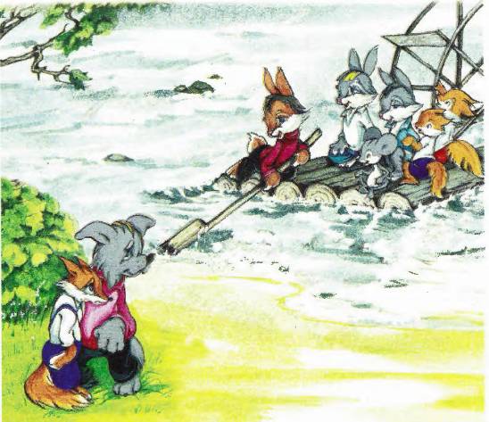 Сошли на берег Волчонок с Лисёнком и, поджав хвосты, с виноватым видом в лес ушли.