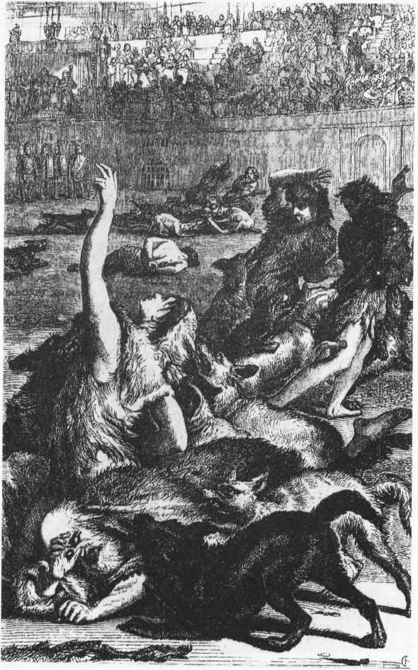 Первые христиане, завернутые в звериные шкуры и брошенные на съедение собакам