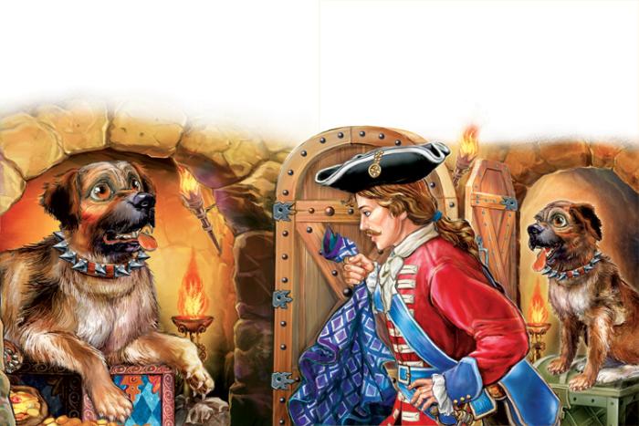 Затем солдат пошёл в третью комнату. Фу ты пропасть! У этой собаки глаза были ни дать ни взять две круглые башни и вертелись, точно колёса.