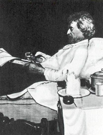 Писатель за работой в своем кабинете. Снимок сделан в 1904 г. секретарем и биографом писателя Олбертом Биглоу Пейном, написавшим трехтомную биографию Твена