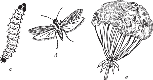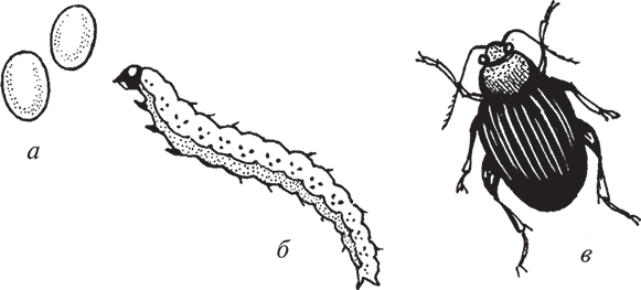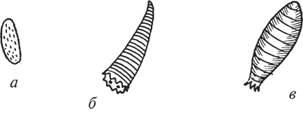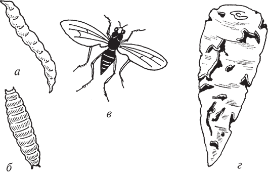 Рис. 86. Свекловичная муха: а – яйцо; б – личинка; в – куколка