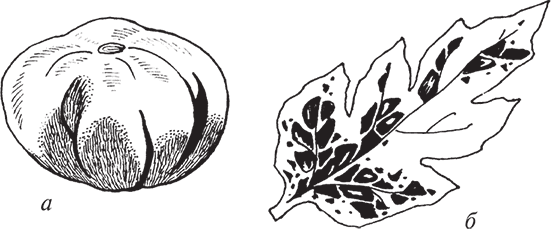 Рис. 113. Бактериоз: а – на листе; б – на плоде