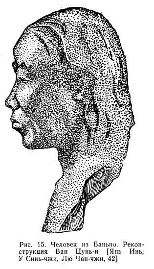 Важно подчеркнуть, что неолитические краниологические серии из бассейна Вэйхэ обнаруживают немало особенностей, сближающих их с древними и современными популяциями южного ответвления тихоокеанских монголоидов, которые обладают переходными чертами от монголоидных рас к австралоидным. Серии, описанные Янь Инем и его коллегами, по сравнению с другими восточноазиатскими сериями черепов характеризуются сравнительно небольшими размерами лица, тенденцией к прогнатизму (особенно альвеолярному), относительной широконосостыо, очень слабым выступанием носовых костей. Эти южные признаки выступают у яншаосцев долины Вэйхэ рассеянно: самое низкое лицо, минимальный альвеолярный угол, наименьший симотический указатель найдены, например, на черепах из Баоцзи, наименьший скуловой диаметр — на черепах из Баньпо, а самый высокий носовой указатель — на черепах из Хуасяня. Очевидно, у яншаосцев был сильно выражен расовый полиморфизм, хотя в целом они, безусловно, занимали промежуточное положение между восточными и южными монголоидами (рис. 15).