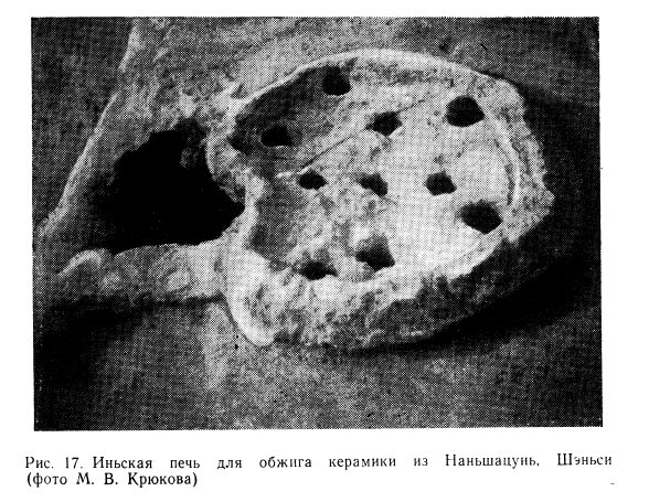 Вместе с тем раннеиньская культура принципиально отличается от всех предшествующих тем, что она уже бесспорно относится к культурам эпохи бронзы. В Эрлитоу найдены бронзовые наконечники стрел, а также ножи, шилья и другие мелкие орудия ремесла [Хэнань яныпи…, 1974, 239]. Другое существенное новшество, характеризующее культуру раннего Инь, — это техника возведения больших общественных зданий на приподнятой глинобитной платформе.