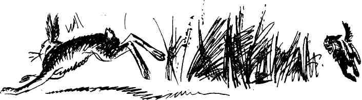 Малыш спокойно дремал в своей ямке за кустами и пока еще не знал о надвигающейся опасности. Но вот чуткие уши уловили собачий лай и насторожились. Этот звук не был знаком зайчонку, но смутная тревога сразу охватила его. Он приподнялся и напружинился, готовый каждую секунду вскочить и бежать.