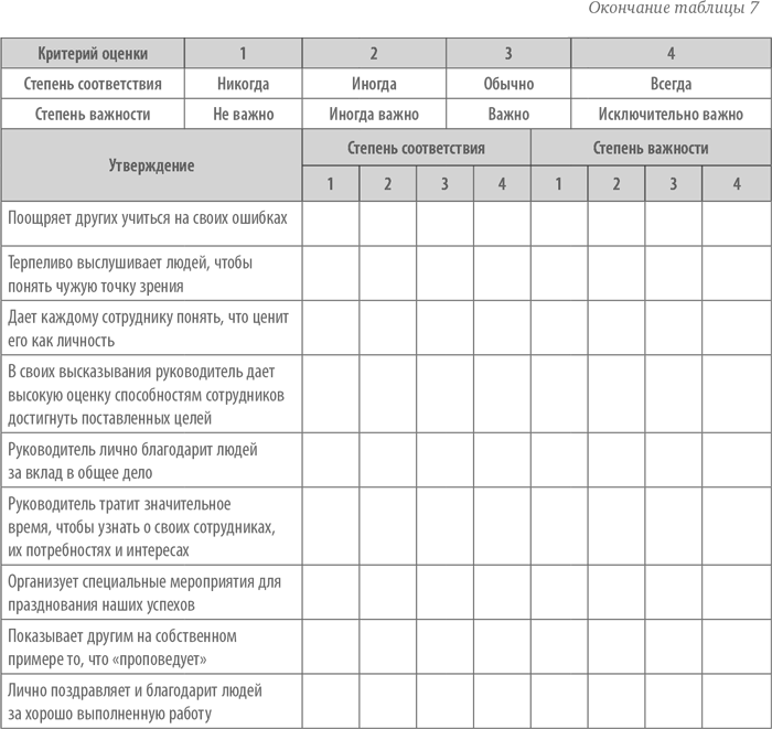 Каждый руководитель затрачивает в среднем от 8 до 10 часов в день на работу. Однако необходимо признать, что сам факт работы мало кого интересует, кроме нас самих. Всех остальных, а особенно собственников, интересуют результаты, которые в первую очередь оцениваются финансовыми показателями (прибылью, рентабельностью, производительностью, эффективностью и другими), а не количеством часов работы. Таким образом, задача каждого руководителя, будь то руководитель крупного холдинга или руководитель подразделения, – обеспечить результаты. От каждого руководителя ждут результатов – либо хороших, либо очень хороших. Самый важный вопрос состоит в том, как достичь запланированных результатов. Руководитель, который не может обеспечить эти самые ожидаемые результаты, надолго не задержится в своем кресле. Какие результаты должен обеспечить руководитель, мы уже писали выше. Но о чем мы еще не писали – как же оценить вашу эффективность как руководителя?