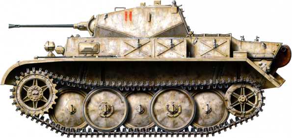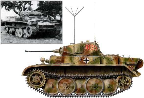 Разведывательный танк Pz.Kpfw.ll Ausf.L «Лухс» из 116-й танковой дивизии вермахта. Он имеет четырехзначный номер «4135» красного цвета с белой окантовкой, также у него отсутствует дополнительный 20-мм бронелист в передней части корпуса. Западный фронт, лето 1944 года.