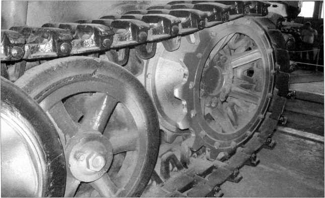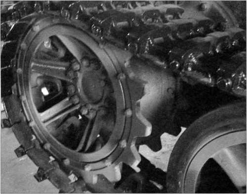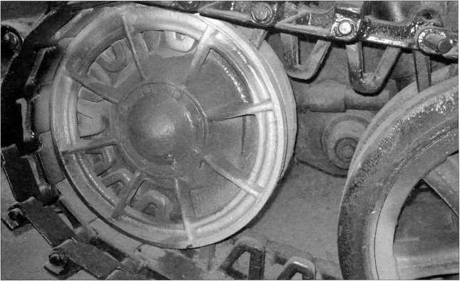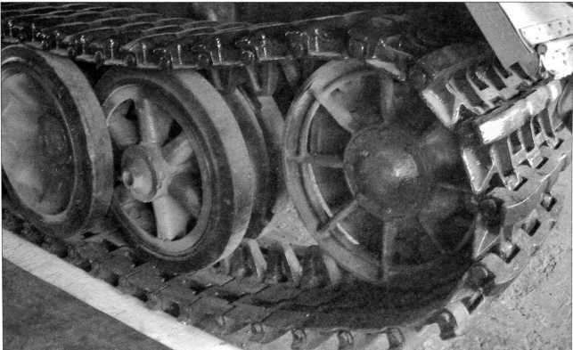 Фотографии ходовой части танка поддержки пехоты Pz.Kpfw.l Ausf.F. Хорошо видны конструкции ведущего колеса и ленивца. На последующих страницах представлены фотоснимки опорных катков и гусениц (ширина траков 540 мм) этой боевой машины. Фотографии 2009 года.